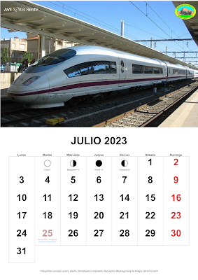 Ya disponemos de nuestro calendario 2023 que a continuación presentamos. Para las imágenes elegidas hemos optado por una alternancia entre presente y pasado dentro de la provincia de Huesca. Tan solo nos hemos permitido una licencia en este formato: la impresionante locomotora eléctrica serie 256 Euro 6000 Stadler Rail, el nuevo fichaje de Renfe y competidora directa de la que hasta ahora era la más potente locomotora diésel serie 335 Euro 4000 de Vossloh, también de Renfe, y que hemos ubicado en el mes de noviembre.